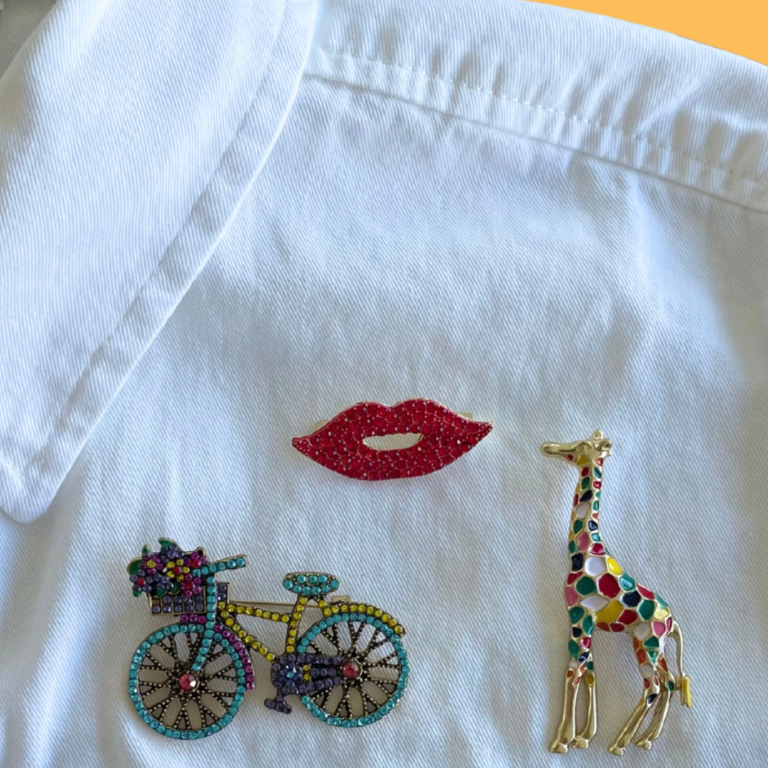 Broche con forma de labios rojos. ¡Elementos que hablan por ti! Coqueto y audaz. Un beso de estilo pop art para tu outfit más atrevido.