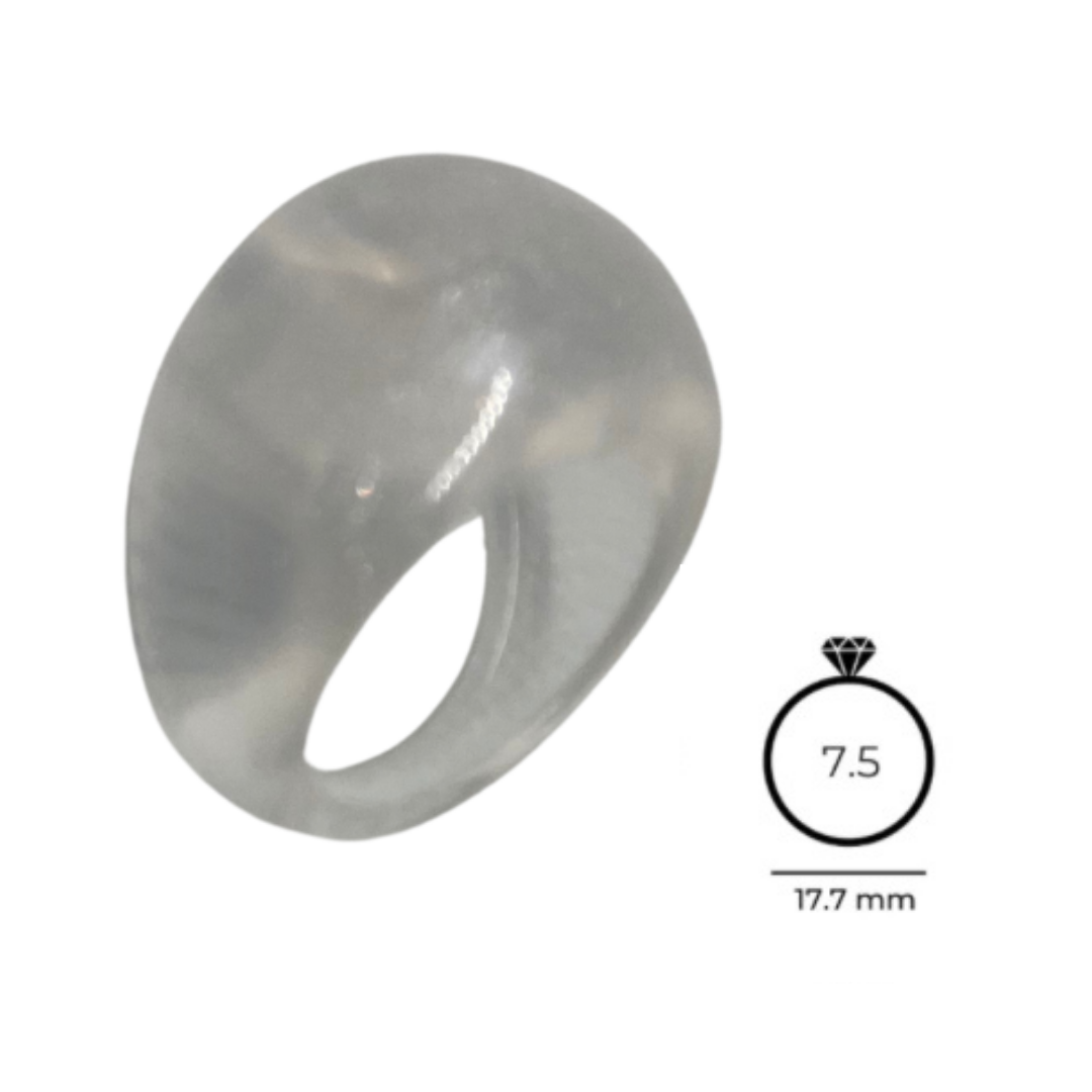 Anillo de diseño semi-esférico blanco. ¡Elementos que hablan por ti! Arquitectura moderna para tu mano. Líneas limpias para una mujer que proyecta claridad y vanguardia.